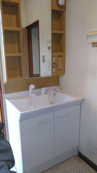 ミラーキャビネットは問題なく使用でき、金額も抑えられるのでキャビネット部分は再利用させていただきました。