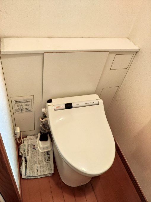 つまり除去のためにはトイレの脱着が必要となり、ウォシュレットの水漏れもあることをお話しすると、お客様からトイレ交換のご要望があり、早急に対応させていただきました。