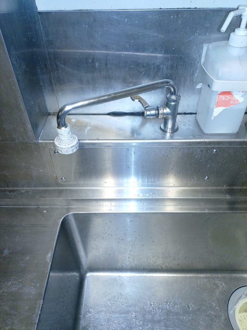 飲食店の厨房でお使いでしたので、長年のご使用で固着、油汚れによる固着もあり、なかなか外れませんでしたが、無事交換させて頂きました。