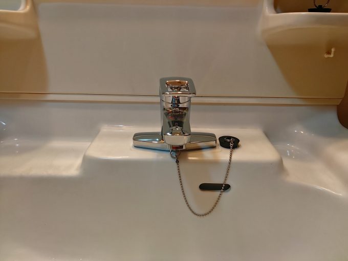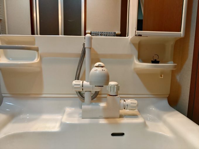 今は洗面所でシャワーをご使用される事は無いとの事でしたので、レバータイプのシンプルな洗面蛇口で交換をさせて頂きました。