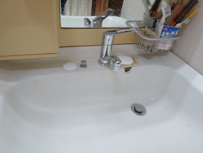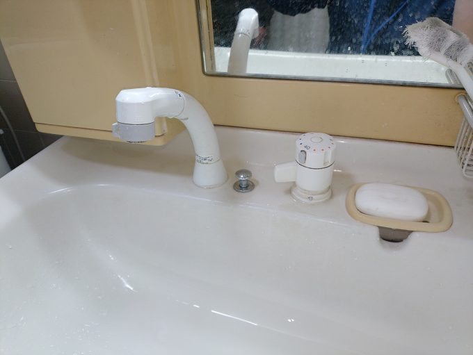 手が洗えれば良いとのことでしたので、シングルレバー混合栓への交換です。