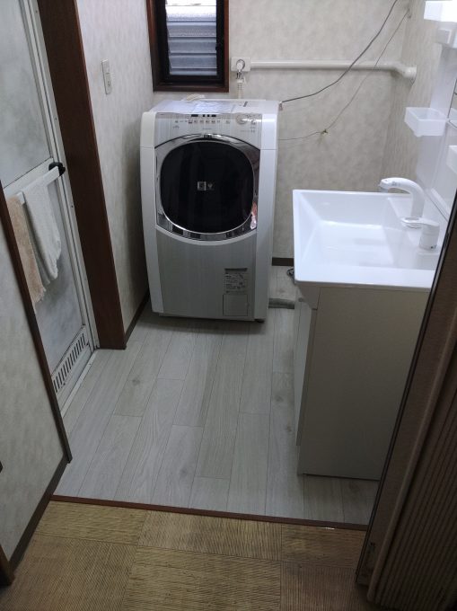 脱衣場の床修理を行い最後に新しい洗面台を設置させていただき完了となりました。