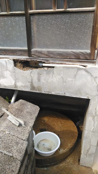 壁の中に通っている給水管が何らかの要因で水漏れしてしまっており、下方からかなりの量の水が垂れてきていました。